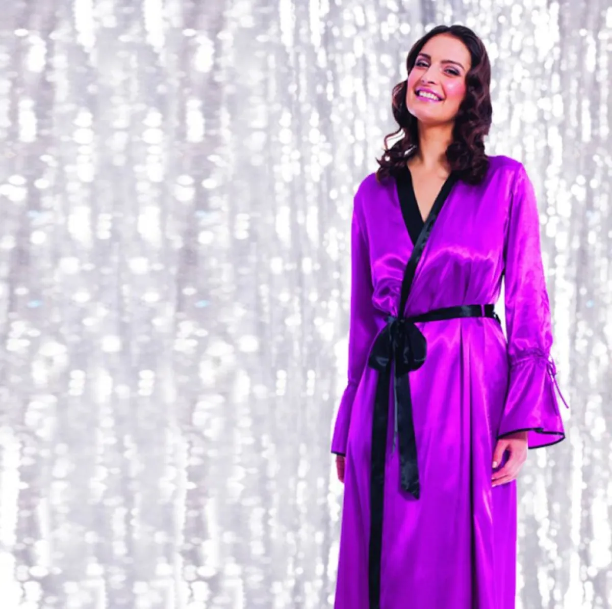 رداء من أحدث تصاميم نعومي. احصلي معه على الدفء الذي تبحثين عنه. هذا الرداء المصنوع من الساتان الناعم باللون الأرجواني الغامق مع الأكمام الزاهية، هو الحل الأمثل في الأوقات التي تكون فيها الراحة كل ما تسعين إليه.
