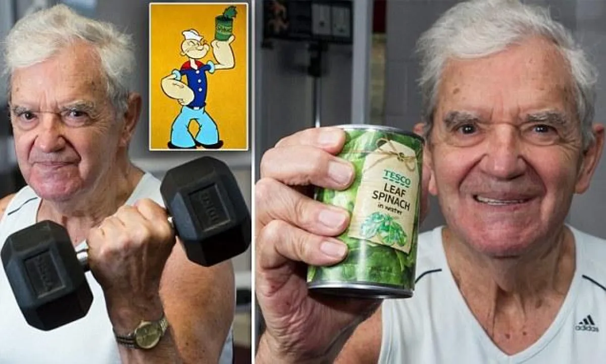 بعد أن كان Popeye مجرد شخصية رسوم متحركة من نسج الخيال، ظهر رجلاً تسعينيّاً في بريطانيا، يُمارس الرياضة 14 ساعة في اليوم، ويرفع أوزاناً تصل إلى 30 كلغ، ويمشي 226 متراً على جهاز المشي، بفضل السبانخ.