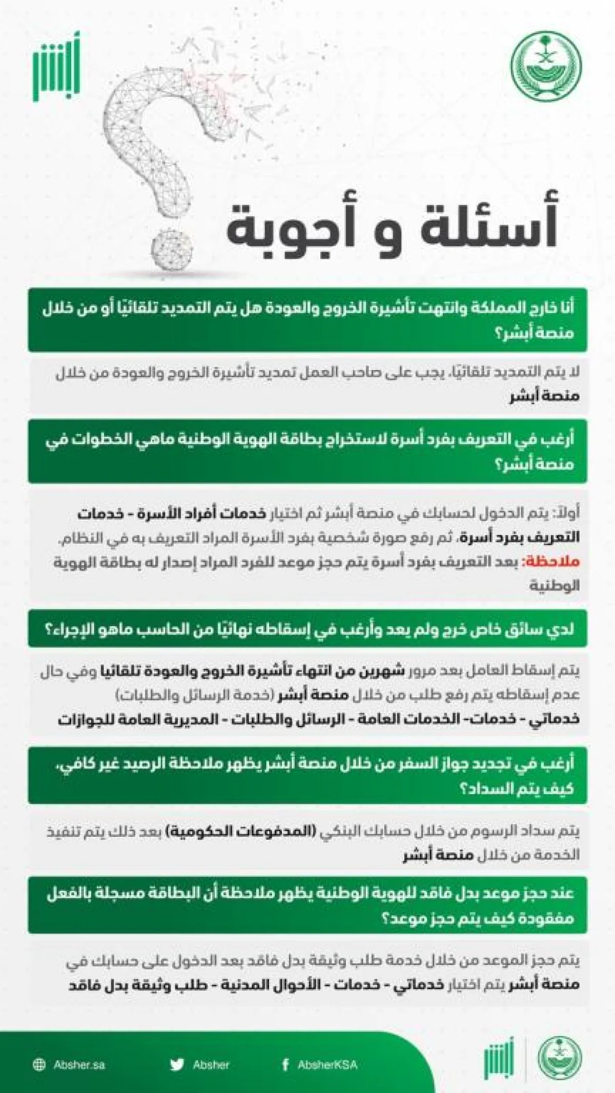 أبشر تصدر توضيحاً مهماً بشأن تجديد تأشيرة الخروج والعودة للعالقين بالخارج