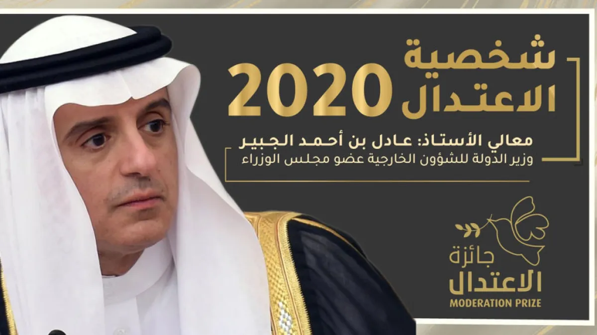 فاز عادل بن أحمد الجبير، وزير الدولة للشؤون الخارجية عضو مجلس الوزراء السعودي، بجائزة الاعتدال لعام 2020.