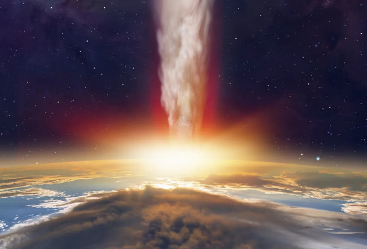 صخرة الفضاء التي قضت على الديناصورات ارتطمت بالأرض بزاوية شديدة الانحدار؛ بحيث لم يكن أمام الديناصورات فرصة، وضع العلماء نموذجاً لمسار الكويكب ووجدوا أنه اصطدم بزاوية 60 درجة فوق الأفق. مقارنةً بزوايا الاصطدام الضحلة، تسبب هذا المسار في إطلاق الكويكب نحو ثلاثة أضعاف كمية الكبريت وثاني أكسيد الكربون في الغلاف الجوي؛ وفقاً للنموذج، تسبب الغاز المنبعث من التأثير في تغير المناخ العالمي وقتل 75٪ من جميع أشكال الحياة على الأرض، بما في ذلك جميع الديناصورات.
