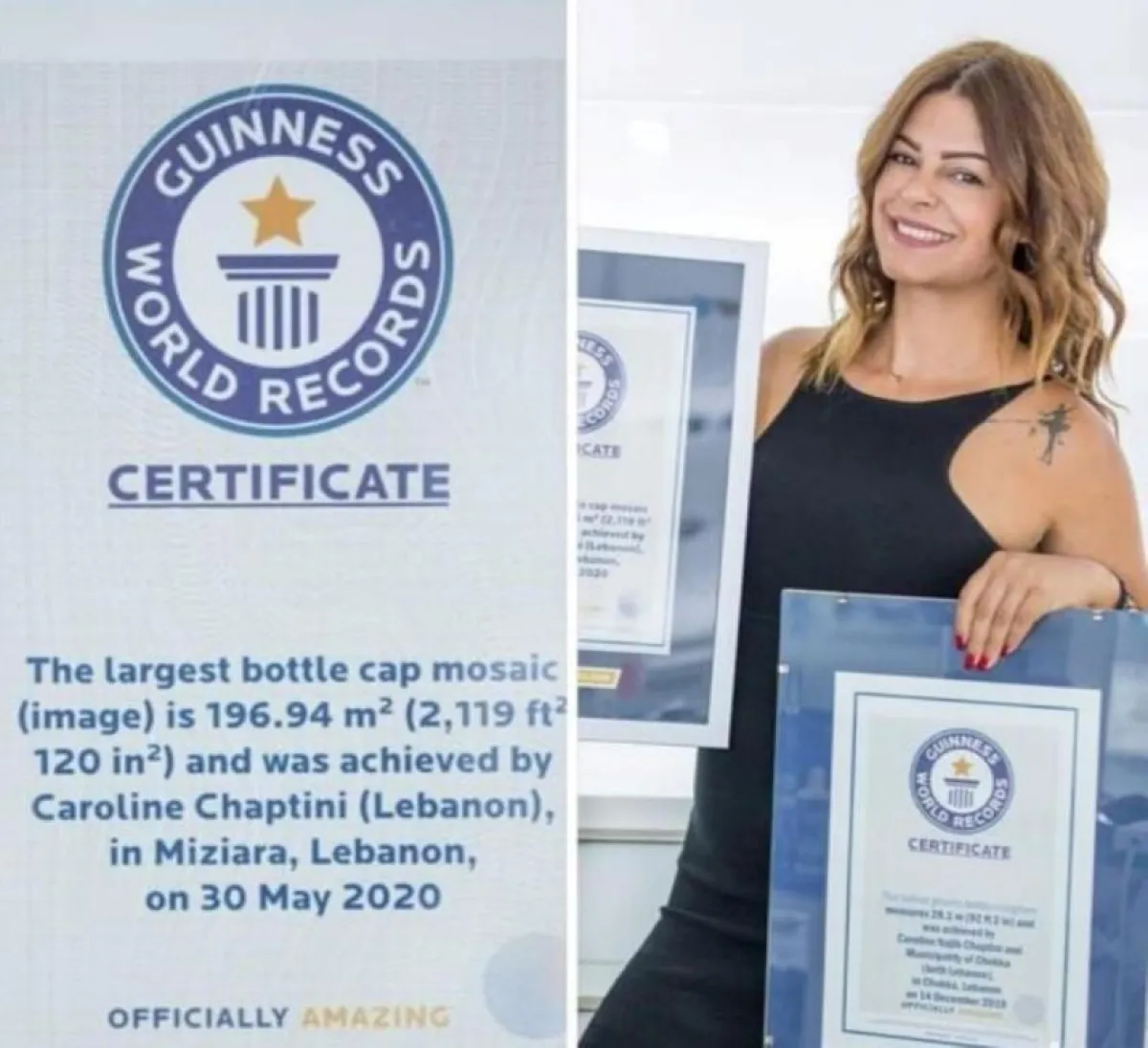 أصبحت كارولين شبطيني، الناشطة البيئية، المرأة اللبنانية والعربية الأولى التي تحصد ثلاث جوائز من موسوعة جينيس العالمية بتحطيمها الأرقام القياسية.