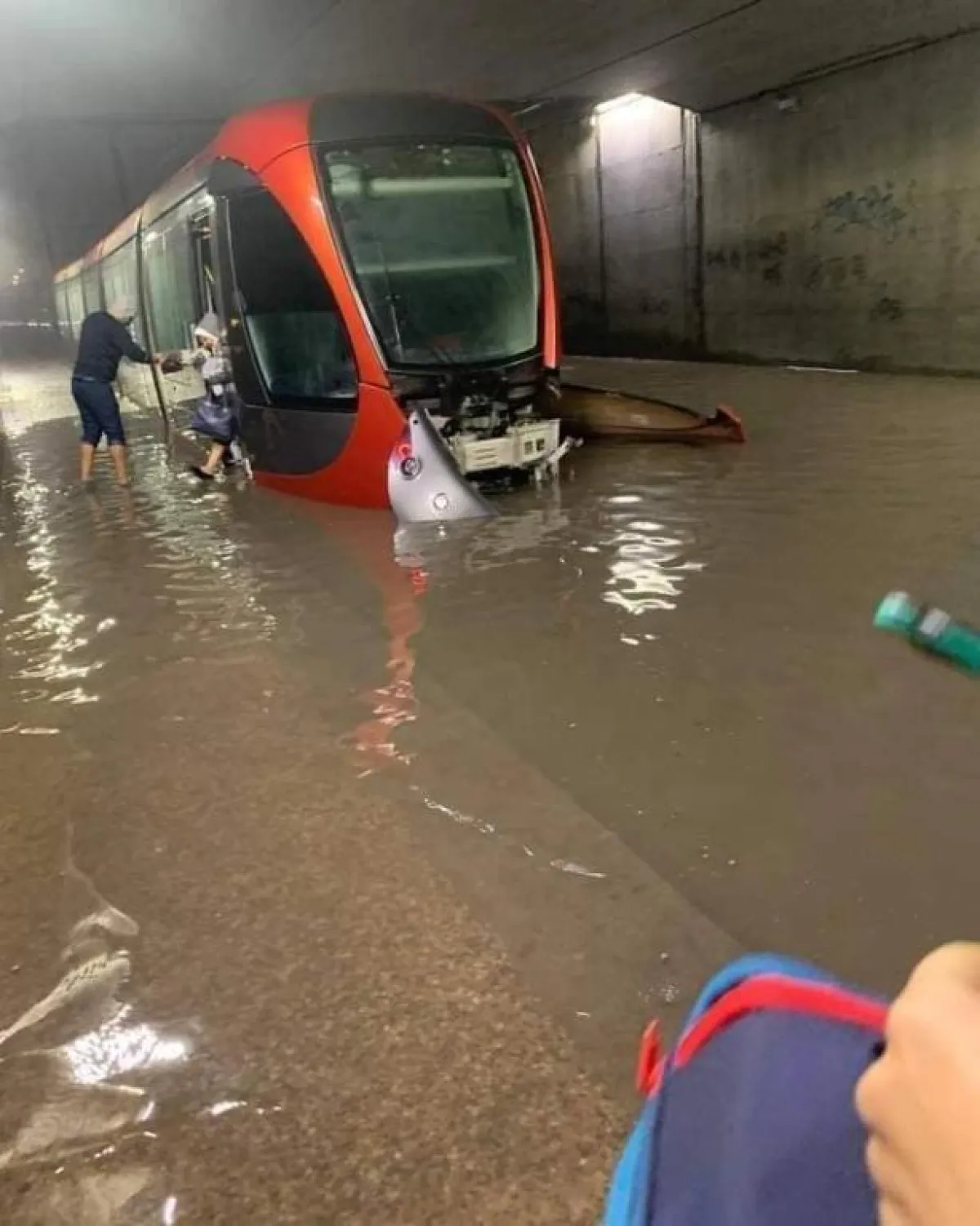 وتناقل رواد مواقع التواصل الاجتماعي صوراً ل الترامواي الذي غمره عباب المياه وكأنه سفينة، وأخرى للسيارات في الشوارع تغرق في برك من الماء، ومجموعة صور أخرى للأحياء والشوارع التي تحولت إلى بحيرات من الماء والطين، بينما المواطنون يفرون في كل الاتجاهات.