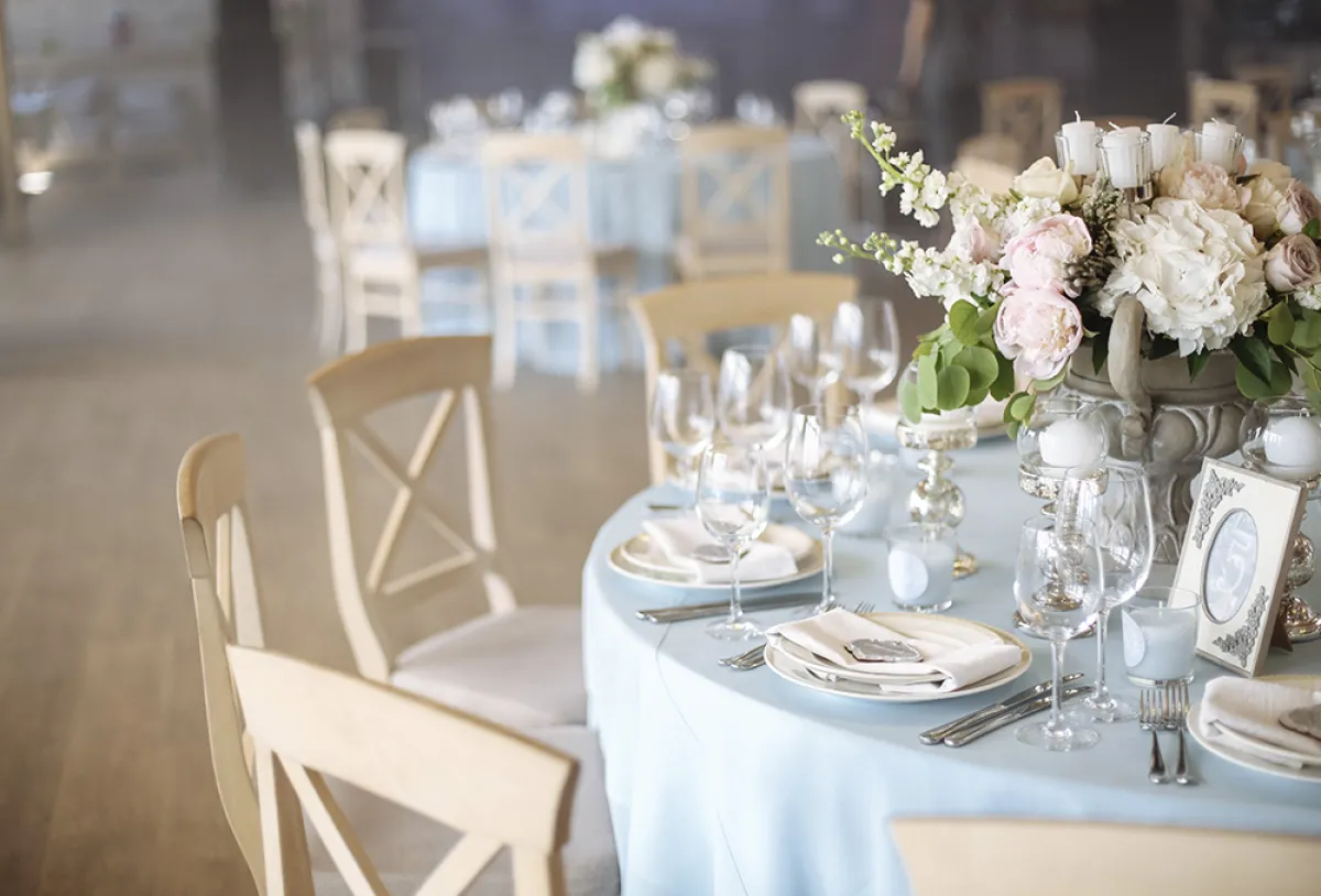 لديكور ناعم وهادئ في حفل زفافكِ، يُمكنكِ الاستعانة بطاولة استقبال بتصاميم أنيقة بمفارش باللون البيج الباستيل، مع الكؤوس وفازات الورود والمناديل الملونة بأحد الألوان الباستيل، مثل الأخضر النعناعي أو الأزرق الفاتح، إضافة إلى كراسيّ معدنية بيضاء أنيقة، وورود باللون الأبيض والبيج والروز.
