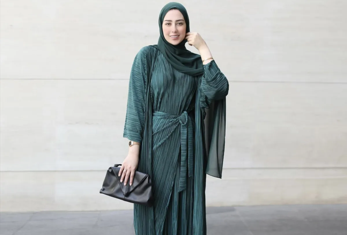 وأطلت في خيار أحادي بعباية وفستان بقماش بليسيه أخضر مصمم بقصة يومية ناعمة مع حجاب أخضر وحقيبة وحذاء باللون الأسود، كما أكملت مظهرها بإكسسوارات ذهبية للمسة أنثوية مبهرة.