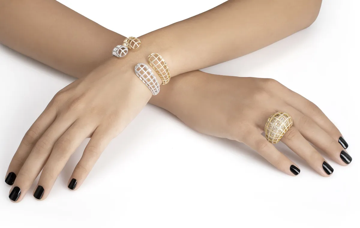 تجمع ندى غزال بين عالمي الفن والمجوهرات، وتبتكر مجموعات مجوهرات راقية خالدة مصقولة يدوياً وبشغف من الذهب من عيار 18 قيراط ومزيّنة بالأحجار الكريمة.