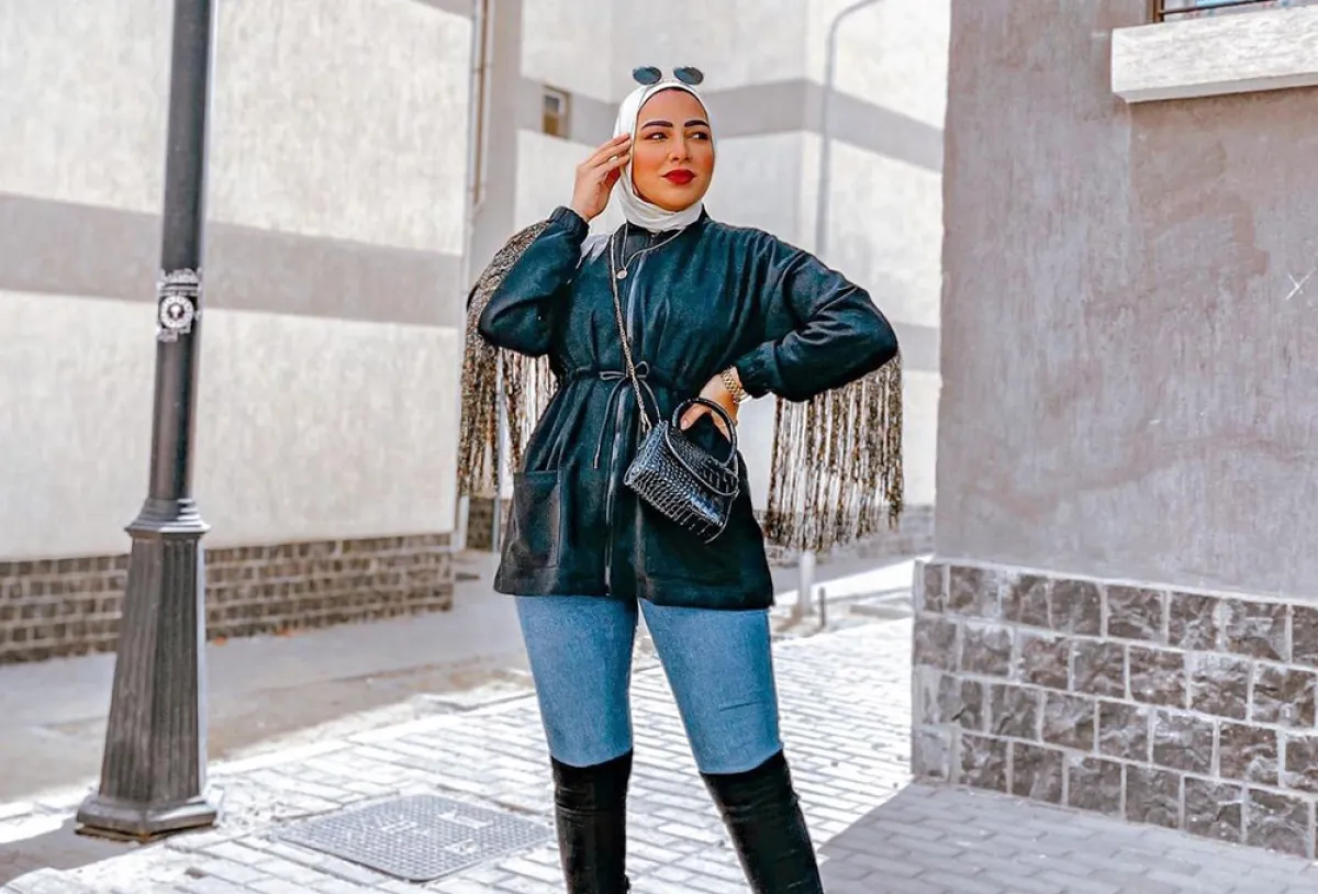 تنسيق بنطال الجينز بأسلوب محتشم من دعاء عكاشة