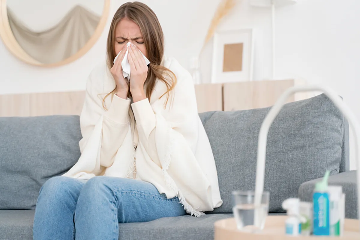 - انسداد الأنف أو احتقان الأنف أو سيلان الأنف أو التنقيط الأنفي الخلفي.