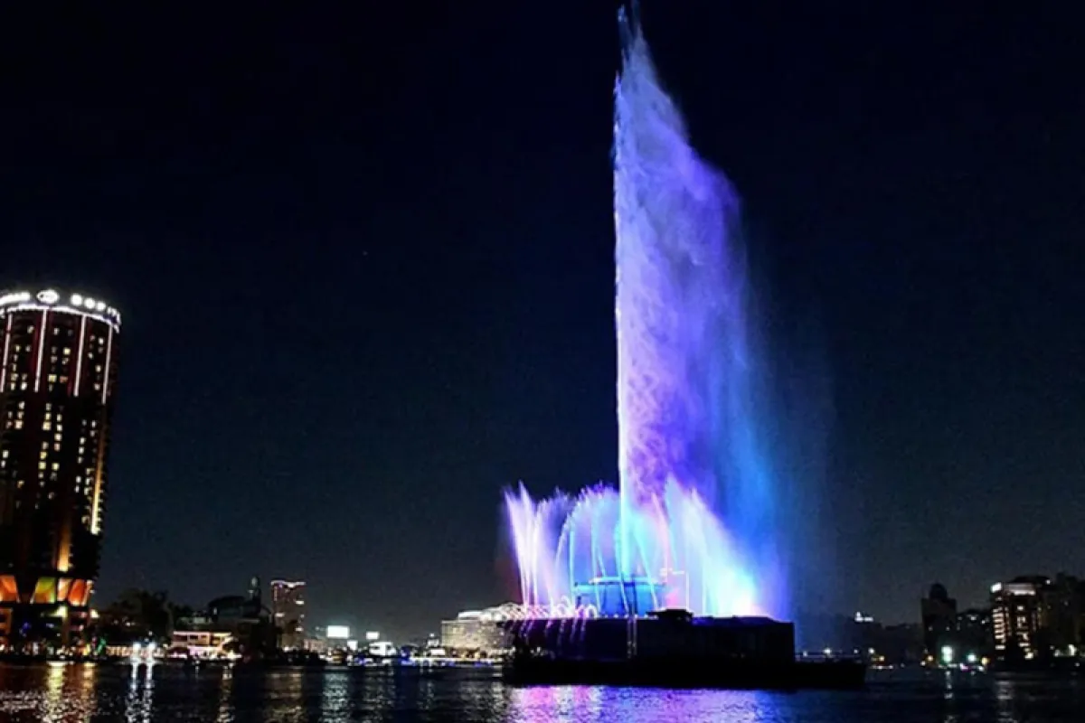7. أجرت الشركة المشغلة النافورة تجارب حتى تضاء ليلًا.