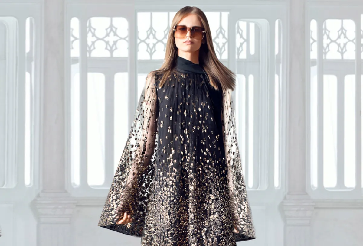 تساعد الفساتين ذات التصميم الواسع على منح إطلالتك الحيوية والأناقة، مثل هذا الفستان القصير بالأكمام المنسدلة من توقيع إيلي صعب، والذي يتمتع بتصميمه الجذاب وقصته الواسعة، ويمكنك اعتماده لإخفاء عيوب البطن ولتتمتعي بإطلالة ساحرة.