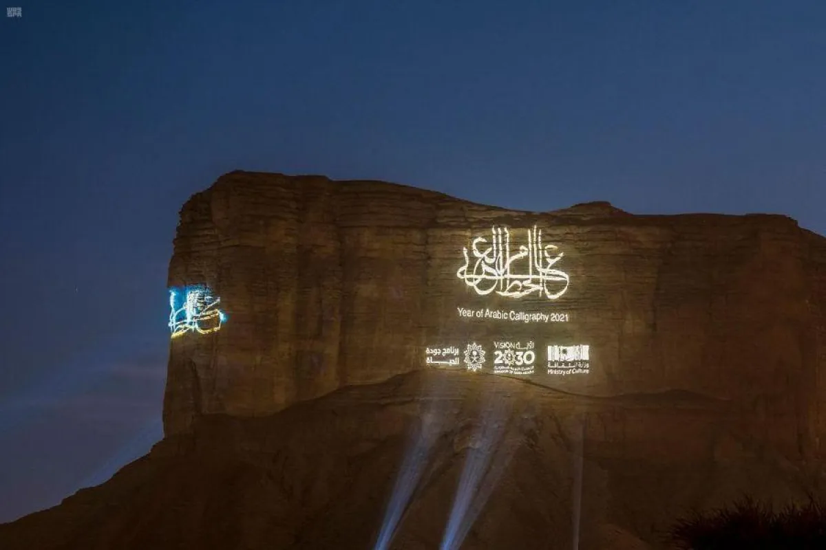 نفذت وزارة الثقافة عرضاً رقمياً مرئياً على جوانب قمة جبل طويق الشهير غربي مدينة الرياض، يحمل شعار مبادرة "عام الخط العربي"، وذلك لتعزيز الصورة الذهنية لمبادرة عام الخط العربي التي عملت وزارة الثقافة من خلالها على تحويل الخط العربي من وعاء ثقافي إلى أيقونة تمثل عنصرًا مهمًا في الهوية الثقافية للمملكة بكونها المصدر التاريخي الأصيل للثقافة العربية.