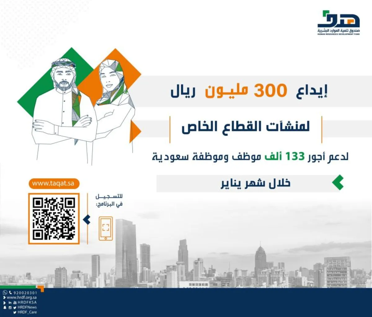 وفي التفاصيل، فقد أبان صندوق تنمية الموارد البشرية (هدف)، أنه أودع 300.2 مليون ريال في الحسابات البنكية لمنشآت القطاع الخاص المستفيدة من برنامج "دعم التوظيف"، تمثل دعم البرنامج خلال شهر يناير لأجور 133 ألف موظف وموظفة سعودية، يعملون في القطاع الخاص.