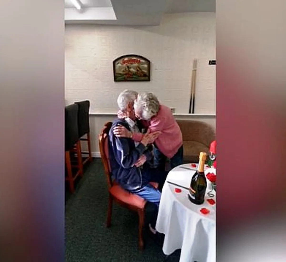 ول الزوجان منعزلين عن بعضهما رغم وجودهما في نفس الدار إلى أن جاءت فرصة اللقاء التي انتراها بشوق كبير، حيث احتضن الزوجان بعضهما في لقاء ملئ بالدموع، وتم تقديم وجبة رومانسية للعجوزين على ضوء الشموع بما في ذلك حساء الطماطم تليها فطيرة اللحم والبطاطس مع الخضار.