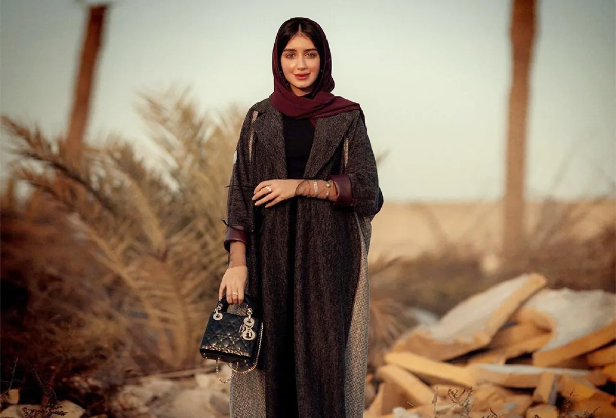 في إطلالة أكثر فخامة تناسب السهرات المسائية أو المناسبات الاجتماعية، نسقت مدونة الموضة البحرينية خولة المراغي العباية المُطرزة بطريقة أكثر جاذبية، حيث اعتمدت عباية مفتوحة باللون البني، ذات تطريزات بالخرز الذهبي على أساور الأكمام، ونسقتها مع فستان أنيق باللون الأسود، وحقيبة يد صغيرة من الجلد الأسود اللامع.