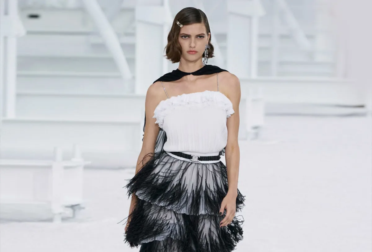 فستان أبيض وأسود بالشراريب من شانيل Chanel
