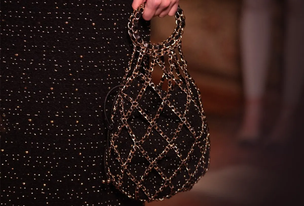بعيدًا عن التصميمات التقليدية والكلاسيكية، حرص كبار المصممون على إبتكار حقائب رائعة بعضها ازدان بالأهداب مثل الموديل الأسود من توقيع Dsquared2، كما لفتنا الحضور الطاغي للشنط المصممة على شكل الشبكه التي تذكرنا بحقائب التسوق ورصدناها لدى شانيل Chanel.
