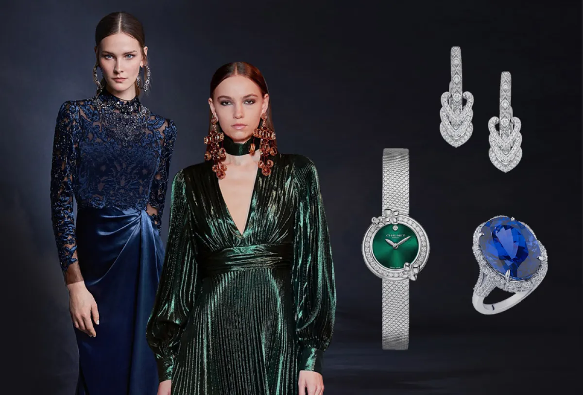 اللون الأزرق بمختلف درجاته، من أفتحها إلى أدكنها، يُدخل إلى إطلالاتك لمسة هدوء وصفاء. فهو لون السماء في نهارها ومسائها، ولون البحر من سطحه وصولاً إلى أعماقه. يزيد اللون الأزرق من غموض إطلالاتك ويثير الفضول للتمعّن أكثر في ذوقك وخياراتك. زيّن اللون الأزرق مجموعات مجوهرات الدور العالمية من خلال أحجار السافير والزبرجد والتنزانيت.. وأحجار أخرى ارتدت هذا اللون الهادئ.