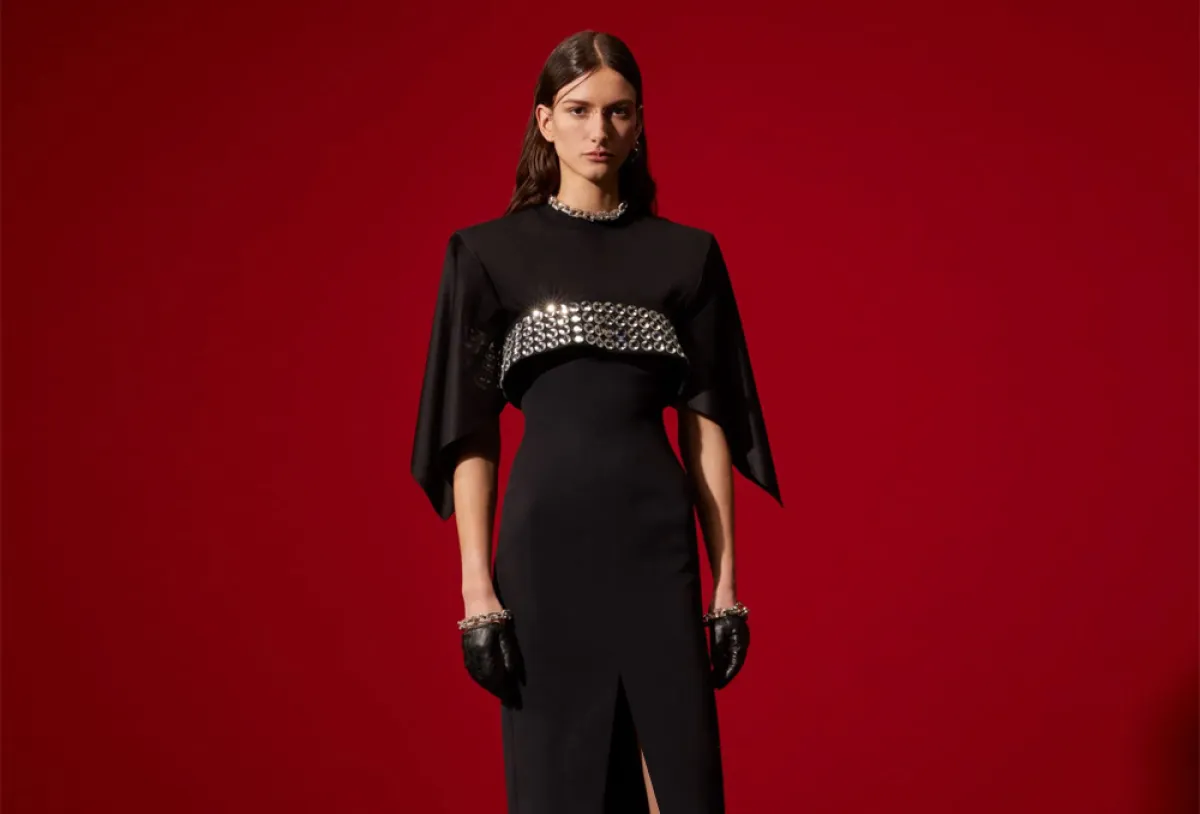 لم تخلو المجموعات التحضيرية لخريف 2021 من فساتين السهرة السوداء، شاهدي الموديل الـ Mermaid ذي الذيل الطويل والمصمم بتوب Peplum بحواف منفوخة من توقيع كريستيان سيريانو Christian Siriano.