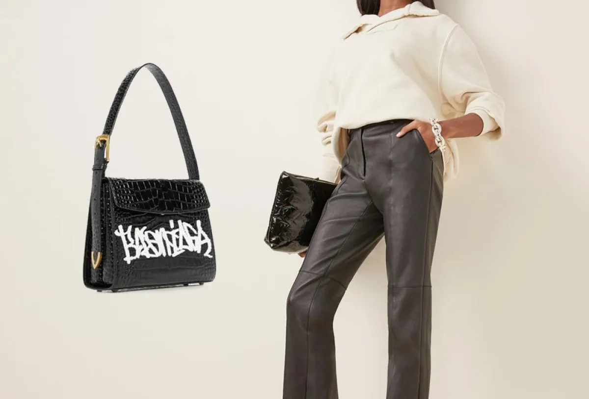 أو يمكنك ارتداء سروال جلدي واسع وقميص من الحرير المطبع بخطوط مكتوبة باليد وحذاء رياضي وتحملين باليد حقيبة مزدانة برسوم الغرافيتي المميزة.