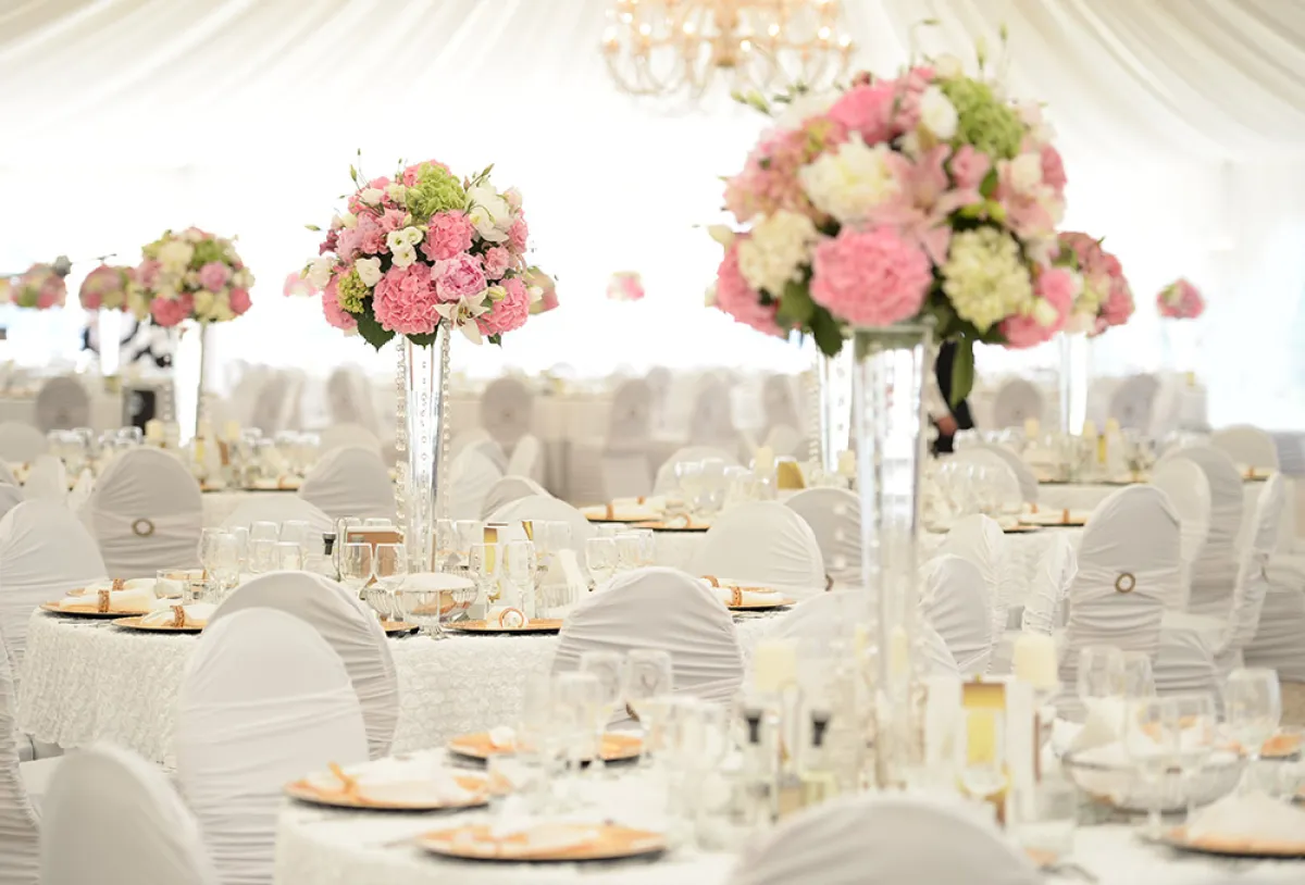 وتُعد طاولات حفلات الزفاف من أهم قطع الديكور داخل القاعة، لذلك يجب الاهتمام بتزيينها بشكل مميز ومختلف وجذاب، حتى يظهر ديكور قاعة الزفاف بشكل فخم وأنيق.