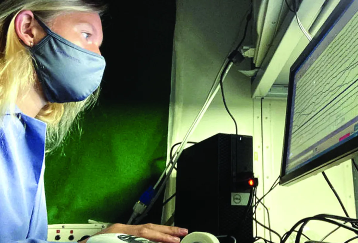 في أثناء نوم المشاركين، تلتقط الأقطاب الكهربائية المثبتة على وجوههم حركات أعينهم وتخطيط كهربية الدماغ «EEG» -وهي طريقة لمراقبة نشاط الدماغ- تتبع مرحلة النوم التي كانوا فيها.