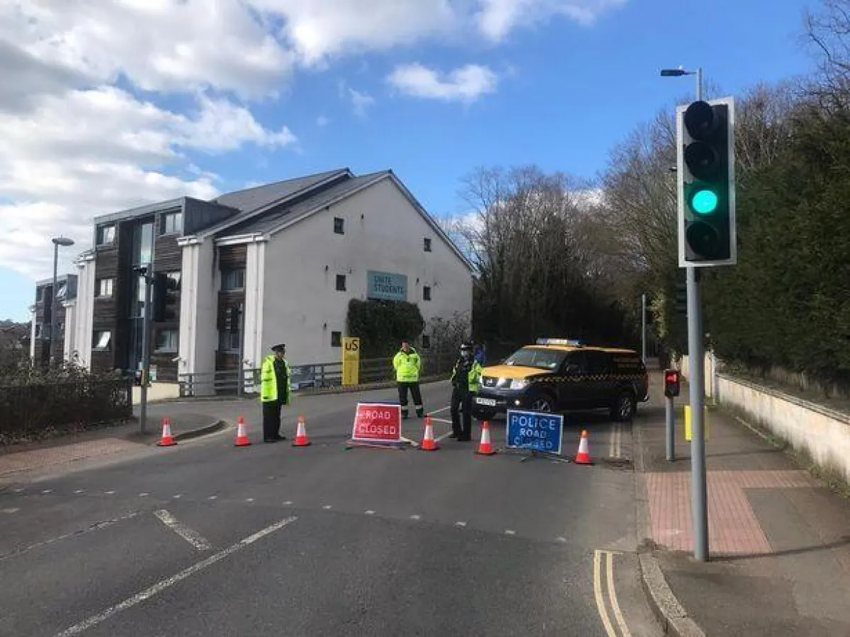 تم تنبيه ديفون وشرطة كورنوال إلى وجود عبوة ناسفة تم اكتشافها في موقع بناء على أرض خاصة إلى الغرب من حرم جامعة إكستر في حوالي الساعة 9. 20 من صباح يوم الجمعة.