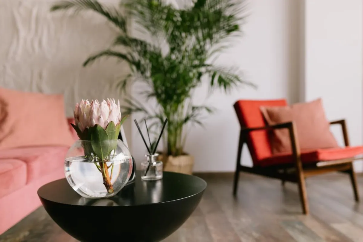 الورد والخضرة في غرفة الجلوس