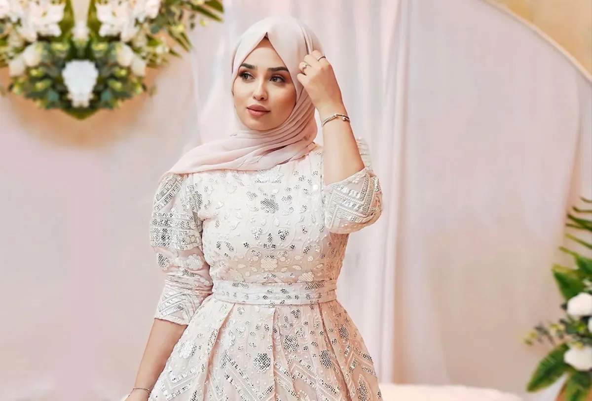 تحتار الكثيرات من النساء في إطلالاتهن للسهرة باعتماد تصميمات الفساتين المحتشمة والمواكبة للموضة، ومن وحي ريتا عدنان يمكننا أن نقدم لكُنَّ بعض الأفكار؛ حيث أطلت بفستان زهري منفوش مصمم بخصر ضيق مع أكمام منفوخة وطُرِّزَ بالفضي بأسلوب ناعم ومميز، وأكملت اللوك بحجاب زهري لأناقة أنثوية، وفي إطلالة أخرى ظهرت بفستان سماوي مصمم بخصر ضيق وطُرِّزَ بالفضي والفصوص الملونة مع حجاب من التوربان بقماش الساتان الناعم، وفي مظهر بسيط وأنيق أطلت ريتا بفستان من الساتان الواسع مصمم باللون الأزرق النيلي المحدِّد للخصر، مع حجاب زهري ناعم.