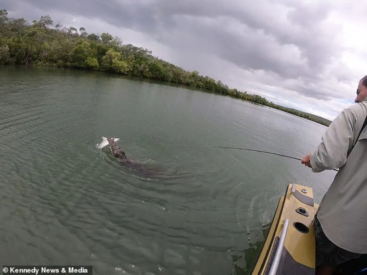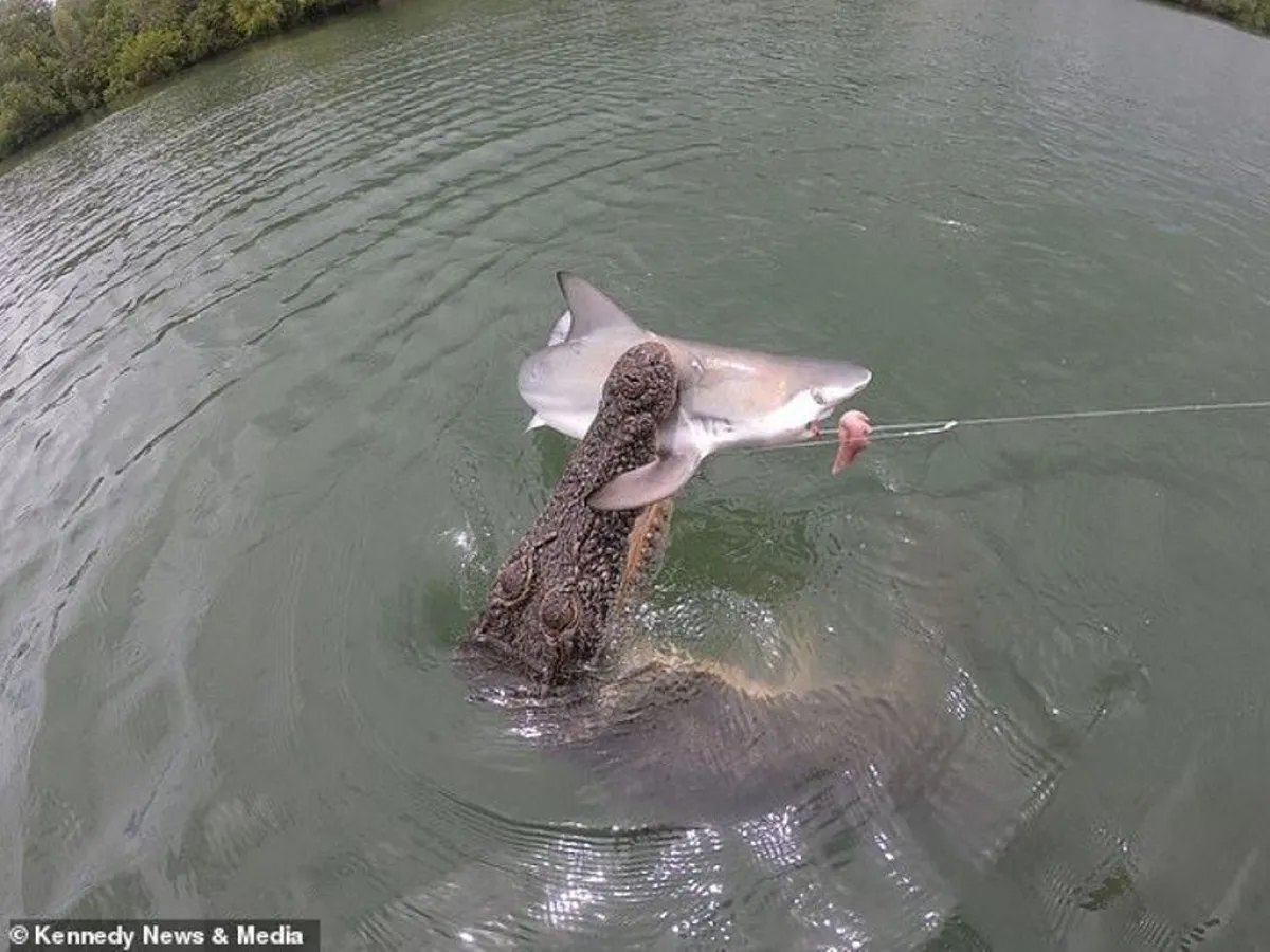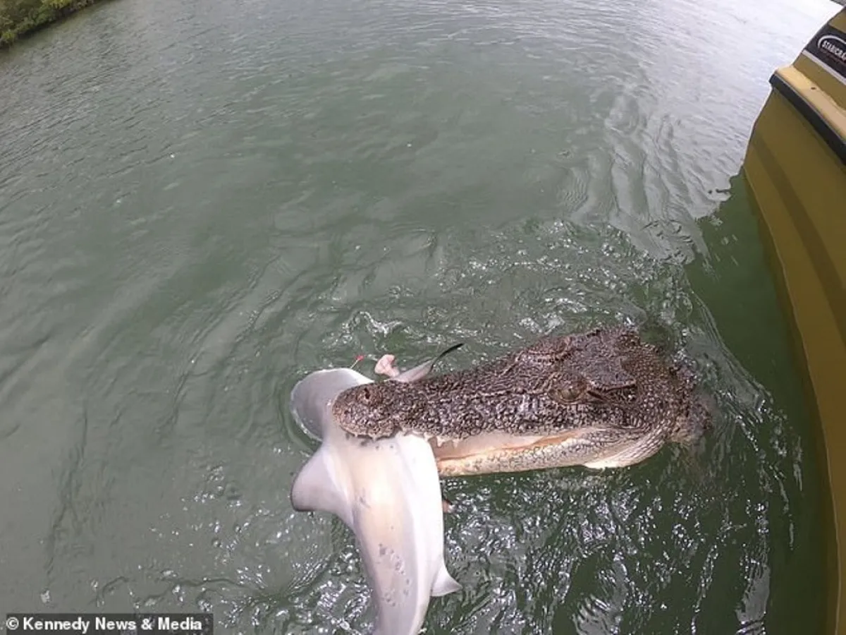 اعتقد صيادان أن الحظ ابتسم لهما، وأنهما تمكنا من اصطياد سمكة قرش، لكنهما فوجئا في غضون لحظات معدودة باقتراب تمساح من قارب الصيد الذي كانا متواجدين على متنه لينقض على سمكة القرش، وانتزعها من صنارة الصيد.