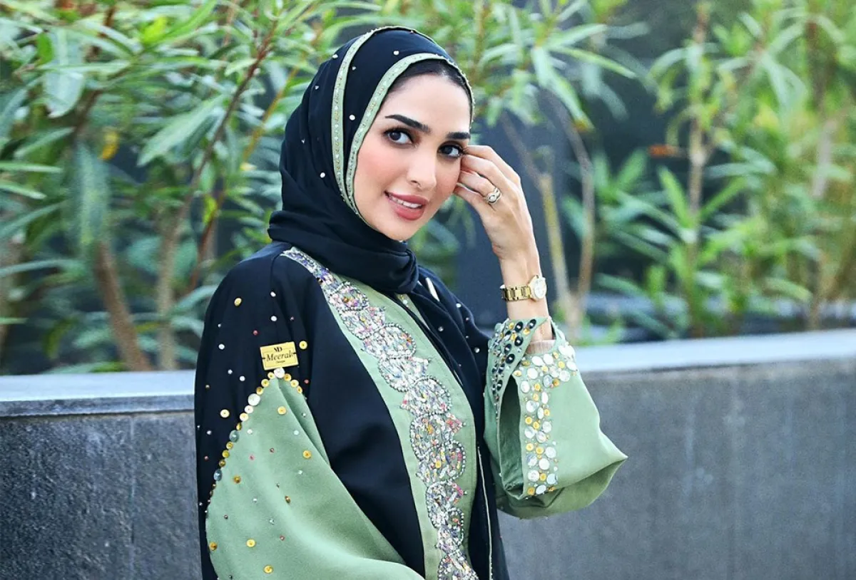 بسمة آل عيسى، بلوغر عمانية مهتمة بالأزياء والموضة، نشرت على حسابها في انستغرام صورة مميزة لإطلالتها بعباية سوداء مزينة بالأحجار؛ حيث صُممت باللون الأسود المُكمل بقماش أخضر مكسوٍّ بالأحجار الفضية والفصوص الملونة بطريقة لافتة وأنيقة، وأكملت اللوك بمجوهرات ذهبية لخيار أنيق.
