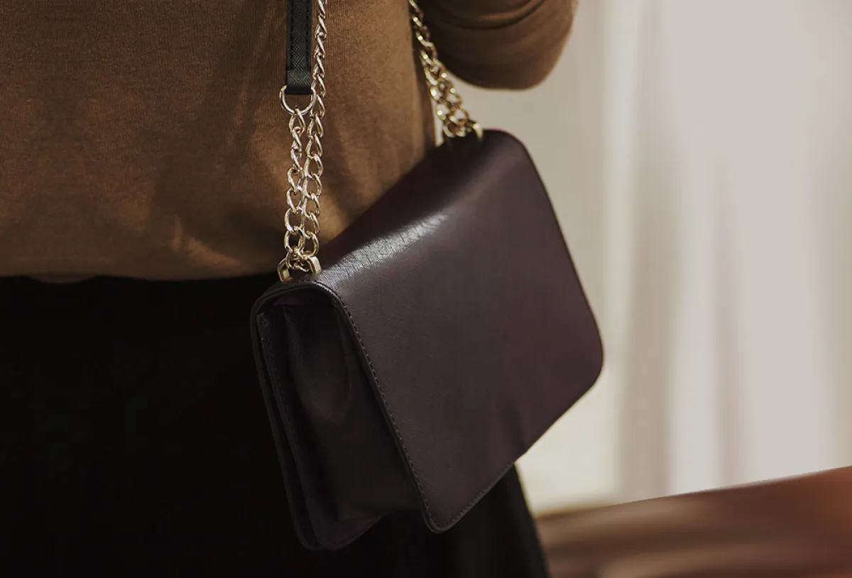 ولتكتمل إطلالتك المميزة، يمكن أن تعتمدي حقيبة لويس فيتون Louis Vuitton البني بالتصميم البسيطة وحزام السلسلة الذهبيية.