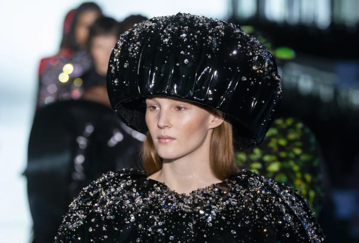 أما بالنسبة للاتي يرغبن حقاً في التميّز؛ برزت إكسسوارات شعر نعتقد أنه من الأسهل وصفها كمجوهرات للشعر، حيث تحاكي صيحات المجوهرات لخريف 2021، كانت هذه أغطية رأس كبيرة مرصّعة بالجواهر ومن المستحيل تجاهلها، كما برزت أغطية الرأس الملتفة حولها المرصّعة بالكريستال، والتي تتدلى فوق الأذنين وتتناسب مع الأقراط الطويلة المرصّعة بالكريستال.