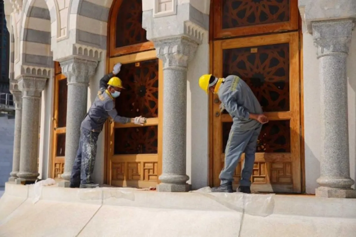 قامت الرئاسة العامة لشؤون المسجد الحرام والمسجد النبوي بأعمال الصيانة الدورية الشاملة لجميع الأبواب الخاصة بالمسجد الحرام والتي تتم على مدار الساعة، بإشراف قسم الأعمال المدنية بوكالة الشؤون الفنية والخدمية؛ حيث عينت (٢٠) موظفاً من مهندسين وفنيين مختصين يشرفون على هذه الأعمال، للتأكد من التنفيذ وفق أصول فنية متبَعة، والتأكد من ثبات جميع القطع.