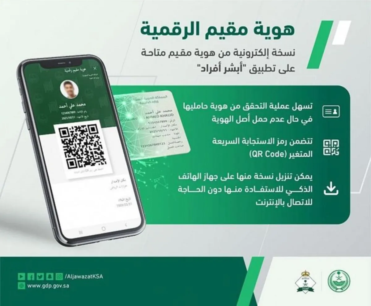 وكانت المديرية العامة للجوازات أكدت أن هوية مقيم الرقمية، تسهم في تسهيل عملية التحقق من هوية حامليها حال عدم وجود أصل الهوية.