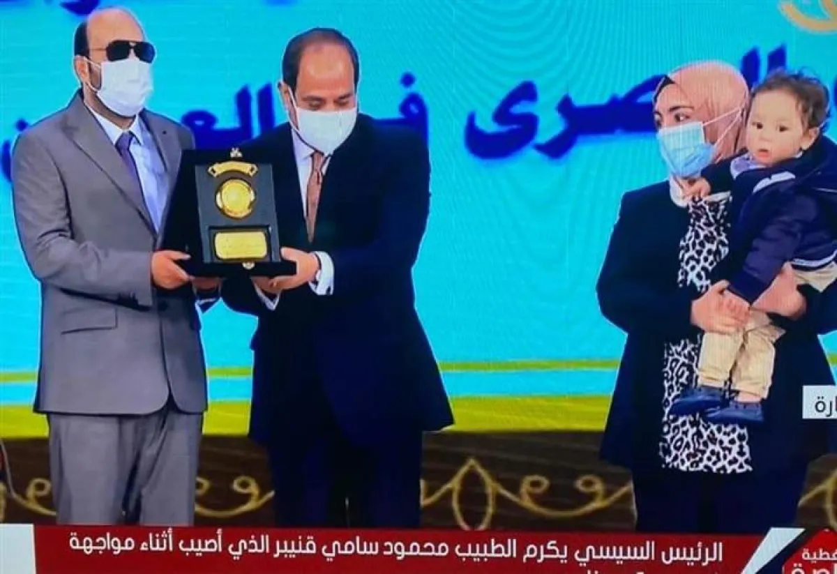 لُقب بـ«أيقونة الطب في مصر» بعد أن فقد بصره بسبب فيروس كورونا خلال مباشرة مهام عمله داخل عزل مستشفى بلطيم في محافظة كفر الشيخ، إنه الدكتور محمود سامي قنيبر، وظل طوال 10 أشهر خاضعاً للرعاية الطبية حتى تأكد أنه فقد بصره بشكل تام، ومنذ يومين كرمه الرئيس عبد الفتاح السيسي مع أسر الشهداء في العمليات العسكرية والأمنية.