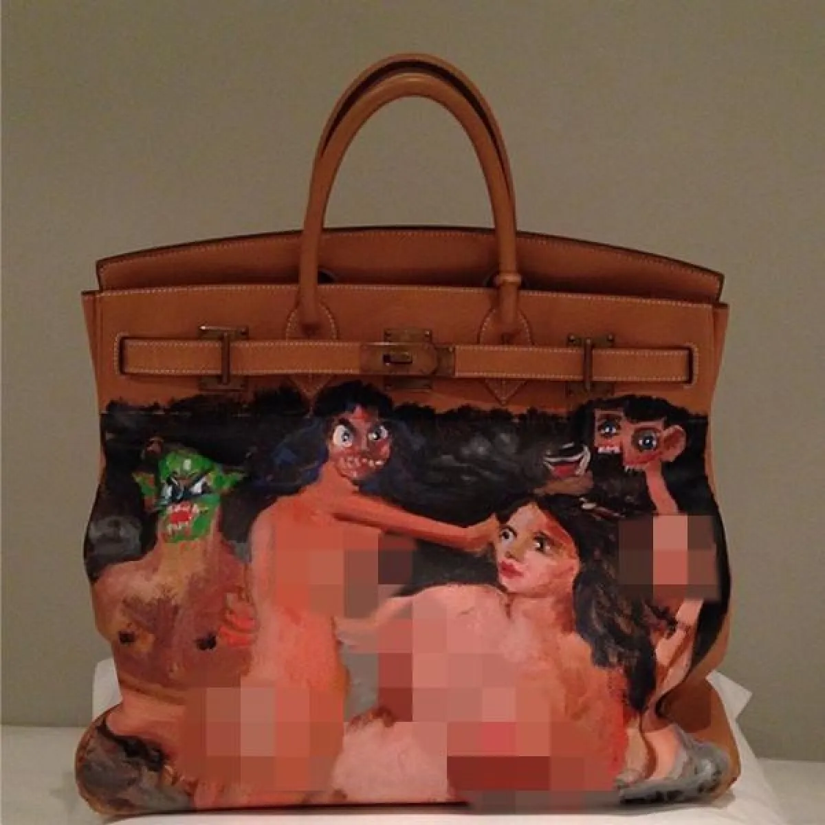 شوهدت Kim Kardashian مؤخراً في جولة تبضع برفقة خطيبها Kanye West وهي تحمل بيدها حقيبة غريبة الشكل حيث تبدو كحقيبة Birkin من Hermes إلا أنها تحمل صورة غريبة جداً على مقدمتها. كعادة كيم الاجتماعية، لم تترك معجبيها والصحافة تتنظر طويلاً لمعرفة سر هذه الحقيبة حيث أضافت صورة لها على حسابها في إنستغرام توضح فيها أن هذه الحقيبة "المميزة" ماهي إلا هدية من Kanye لها بمناسبة عيد الميلاد. الحقيبة هي فعلاً من Hermes الباهظة الثمن، وقد أضاف عليها Kanye لمسة شخصية عن طريق تحويلها إلى لوحة من تنفيذ فنانه المفضل George Condo.