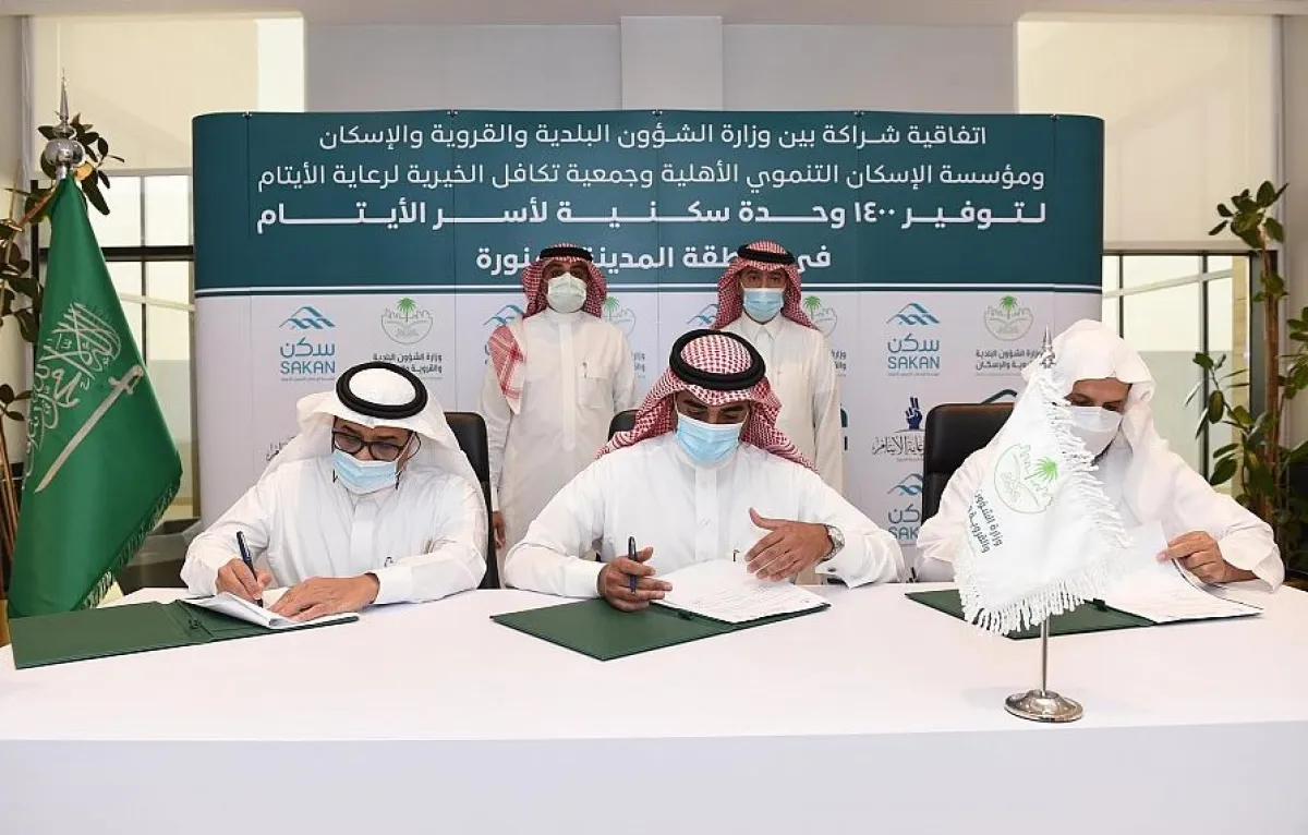 وقع برنامج الإسكان التنموي اتفاقية تعاون مع مؤسسة الإسكان التنموي الأهلية "سكن" وجمعية تكافل الخيرية لرعاية الأيتام في المدينة المنورة، من أجل توفير 1400 وحدة سكنية لأسر الأيتام من مُستفيدي الجمعية في المدينة المنورة.