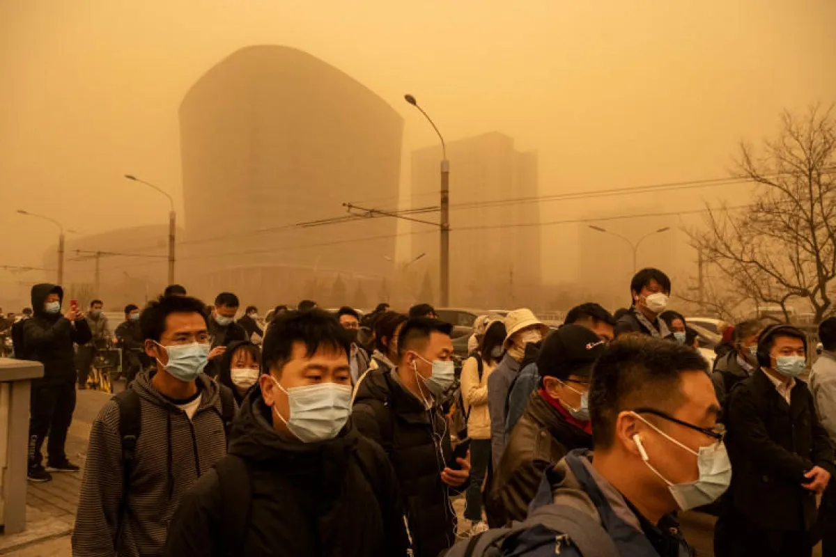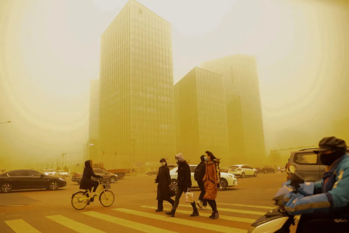 تسببت عاصفة رملية ضخمة مصحوبة بتلوث شديد للهواء في تحول لون سماء بكين إلى اللون البرتقالي المخيف، حيث تعرضت العاصمة وجزء كبير من شمال الصين لأسوأ عاصفة رملية منذ عقد. وبحسب موقع «مترو» تم إلغاء أكثر من 400 رحلة جوية من مطارين رئيسيين في بكين قبل منتصف النهار، كما سجلت مؤشرات جودة الهواء تصنيفاً خطيراً، بينما يسافر الركاب إلى العمل.