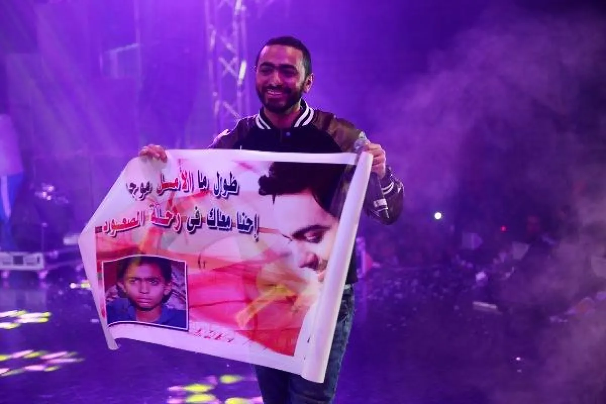 تعالت الهتافات من جمهور تامر ترحيبا به وأكد عدد كبير منهم إنهم تركوا امتحاناتهم ليحضروا الحفل ويحتفلون معه برأس السنة.