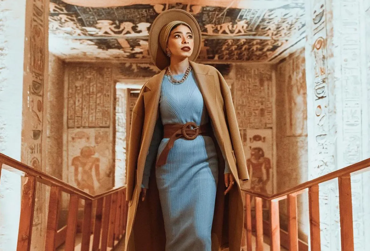 اعتمدت البلوغر الكويتية والمؤثرة في مجال الأزياء والموضة، سارة الدهيم، على تصاميم الفساتين الناعمة المزينة بخصر ضيق لتناسب المحجبات، حيث تأنقت بفستان بني صُمِّمَ بخصر ضيق مع جيوب ضخمة وسحابات في المنتصف، وأكملت اللوك باكسسوارات حيادية اللون مع حذاء وحقيبة من الجلد، وفي إطلالة أخرى نسقت فستاناً أبيض مصمماً بطبقات جانبية مع أكمام واسعة، وزينت مظهرها باكسسوارات حيادية اللون للوك بسيط وصيفي.