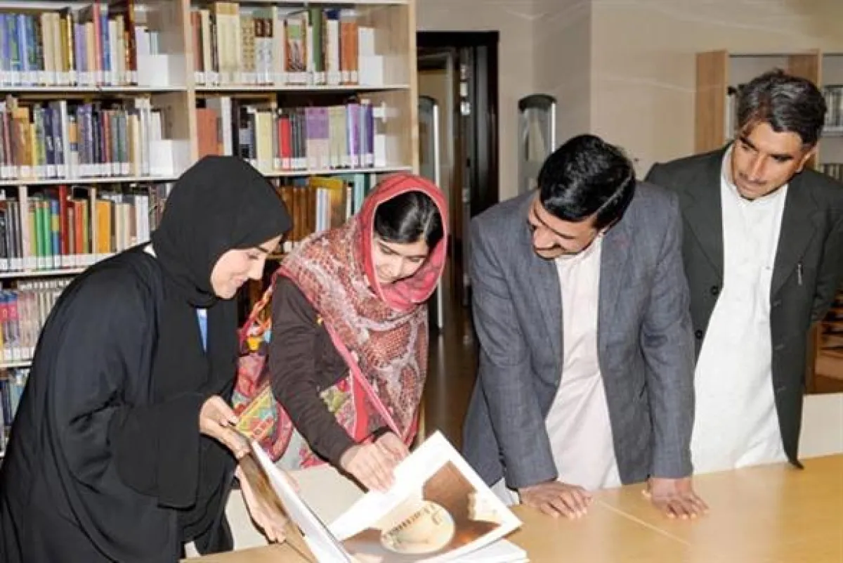 ملالا التي تعرضت لاعتداء مسلح في قريتها الباكستانية " مينغورا " بسبب دعوتها لتمكين البنات من التعليم، قامت بجولة في الصرح الكبير وقاعاته تعرفت خلالها على الأنماط المعمارية المختلفة والتي تتجلى في تصميم الجامع وتؤكد عظمة العمارة الإسلامية وروعتها عبر العصور.
