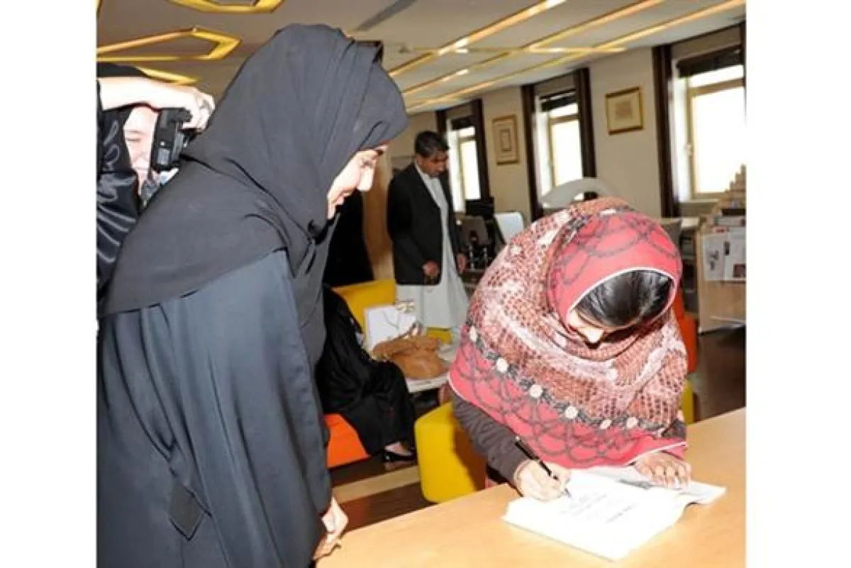 وقد استقبلت أيضاً الشيخة فاطمة بنت مبارك رئيسة الاتحاد النسائي العام، الرئيسة الأعلى لمؤسسة التنمية الأسرية ،رئيسة المجلس الأعلى للأمومة والطفولة الفتاة الباكستانية ملالا يوسف زاي في الاتحاد النسائي العام.