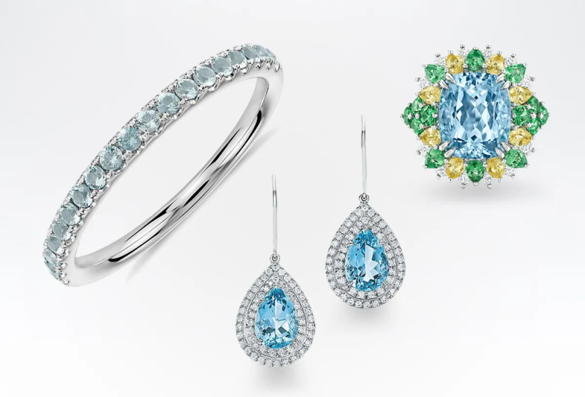 مجوهرات مرصعة بحجر الأكوامارين لشهر مارس
