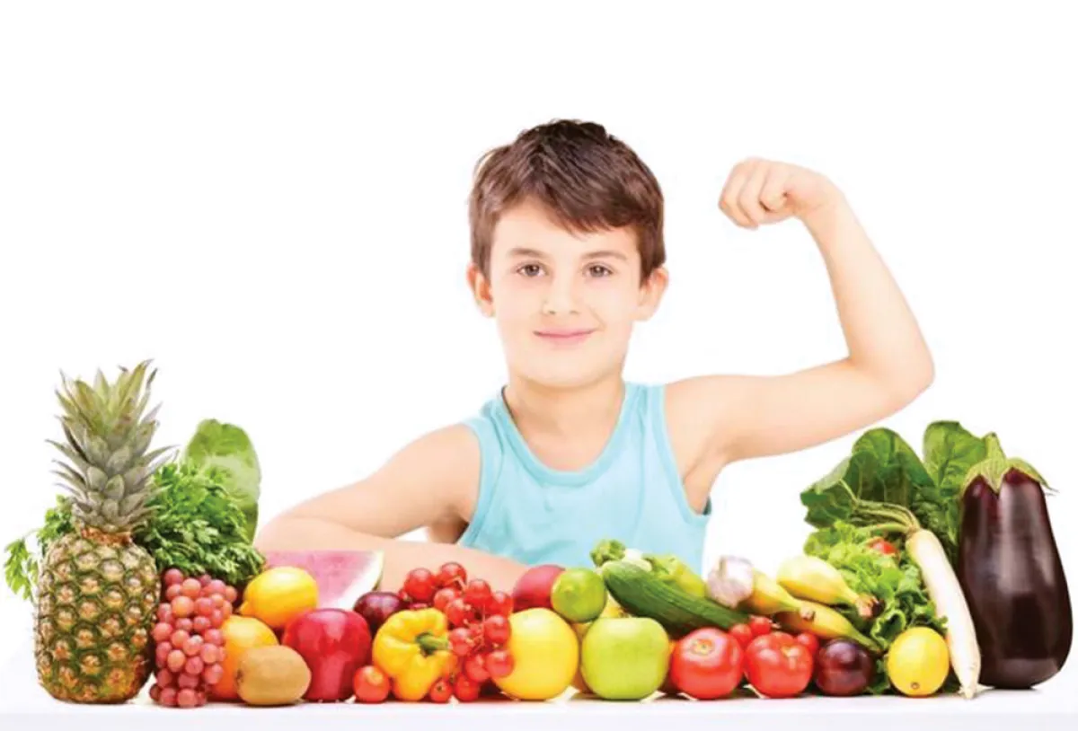 | الفواكه والخضروات: تمدّ الفواكه والخضروات الطفل بالطاقة، لزخورها بالفيتامينات ومضادات الأكسدة والألياف والمياه؛ وكلّها عناصر غذائيّة مفيدة في حماية الطفل من الأمراض (القلب والسكتة الدماغية وبعض أنواع السرطان). ومن مسؤوليّات كلّ أمّ تشجيع طفلها على تناول الخضروات في كلّ وجبة رئيسة، والفواكه في الوجبات الخفيفة، مع تقديم الصنوف الغذائيّة المذكورة، سواء الطازجة منها أو المطبوخة، بصورة مشهّية.