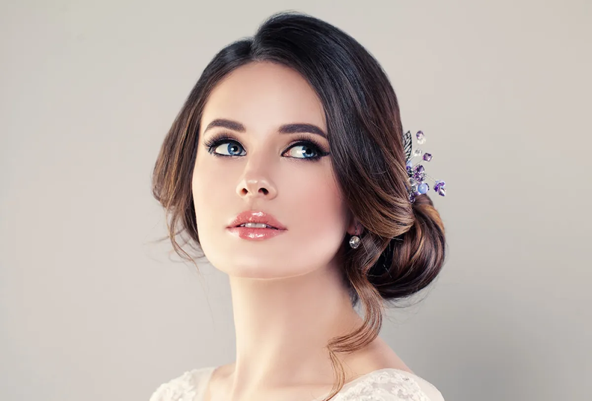 تسريحة شعر مرفوعة مع إكسسوار من اللؤلؤ
