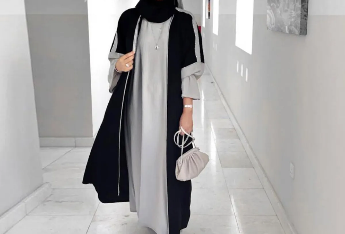 تُعَدُّ موضة العباية المفتوحة محبوبة لدى المحجبات، فهي قطع سهلة الارتداء ومميزة بطولها، كما أنها صيحة لا تختفي موضتها، ومن وحي منى المعمرية اخترنا لك عدة أفكار؛ حيث تأنقت بعباية سوداء مزينة بقماش الدانتيل الأسود في أطراف الأكمام مع فستان باللون الأزرق النيلي، وأكملت اللوك باكسسوارات سوداء ناعمة لخيار بسيط وأنيق، وتزينت في الإطلالة الثانية بعباية سوداء مكملة بقماش رمادي في أطراف الأكمام بأسلوب منفوخ مع فستان رمادي ناعم، وزينت مظهرها بحذاء أسود ذي فصوص لامعة.