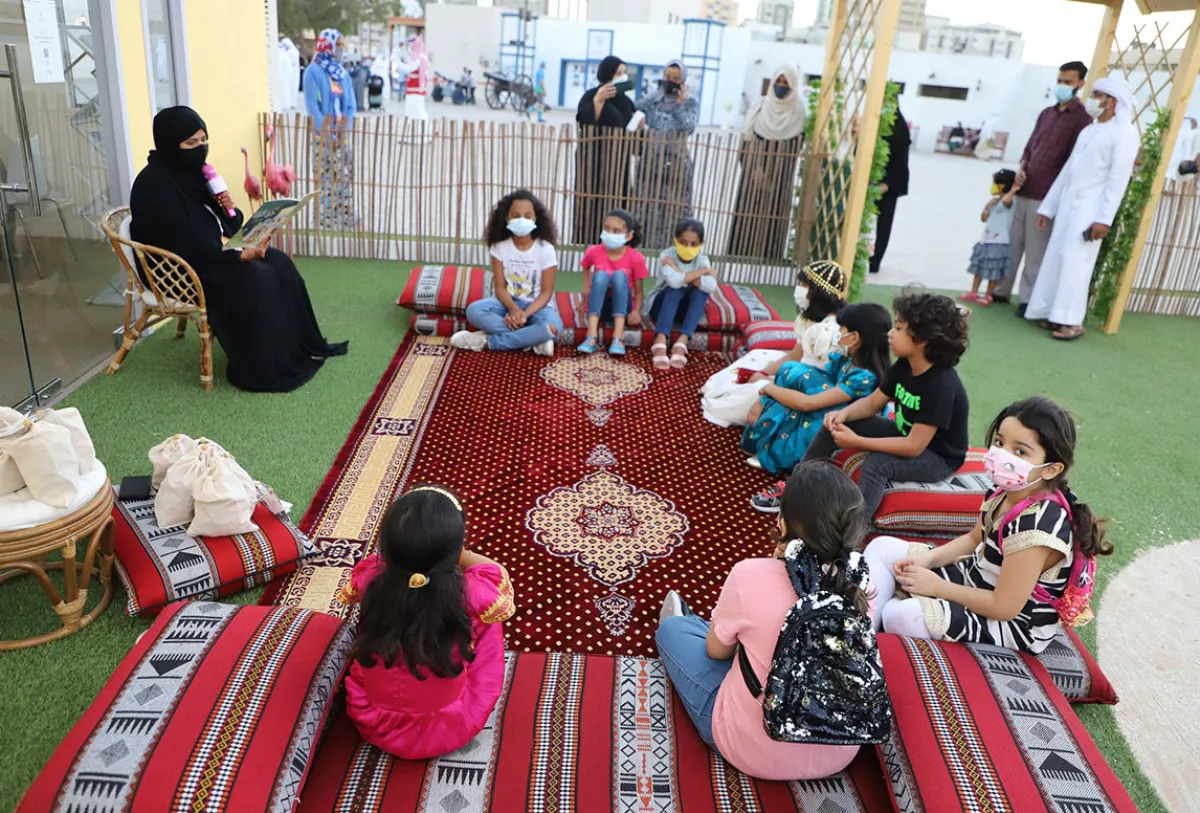 بالأثواب التقليدية، احتفل الأطفال الزوّار لفعاليات الدورة الـ 18 من "أيام الشارقة التراثية" بمناسبة (حق الليلة)، حيث شاركوا أقرانهم من مختلف الجنسيات، تقاليد الاحتفاء بهذه المناسبة التي يتبادلون فيها الحلوى والمأكولات الشعبية، وتجولوا بحقائبهم الملونة بين أروقة وساحات منطقة قلب الشارقة معلنين بالفرح والغناء انتصاف شهر شعبان، واقتراب حلول شهر رمضان الكريم، وحملتهم فعاليات "الأيام" إلى عوالم حكايات ومنافسات ممتعة، إذ جمعتهم على جلسات قرائية ومنافسات لنيل جائزة أفضل زي شعبي بهذه المناسبة، فتزينت لقاءاتهم بالأثواب التقليدية الإماراتية، والسورية، والسودانية، والمغربية، والفلسطينية، وغيرها من الثياب التي تعبّر عن تراث بلدان الأطفال وتاريخ ثقافتهم.