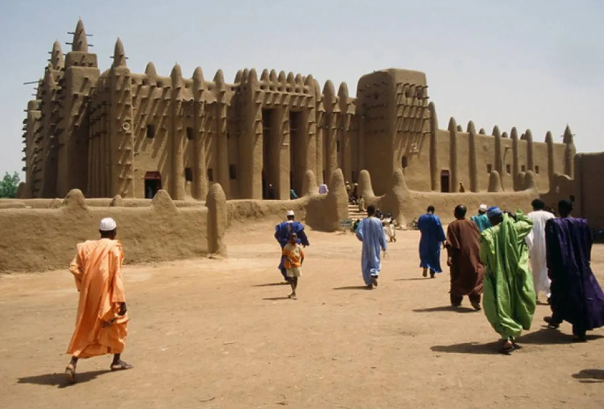 يعدّ أحد عجائب العمارة في أفريقيا؛ المسجد الكبير في دجيني (مالي حالياً) هو أيضاً أعظم إنجاز للعمارة السودانية الساحلية، حيث يُعدّ أكبر هيكل مبني من الطين في العالم. وتحيط به أحياء منخفضة الارتفاعات من المنازل المبنية من الطوب اللبن التي تشكل المدينة.