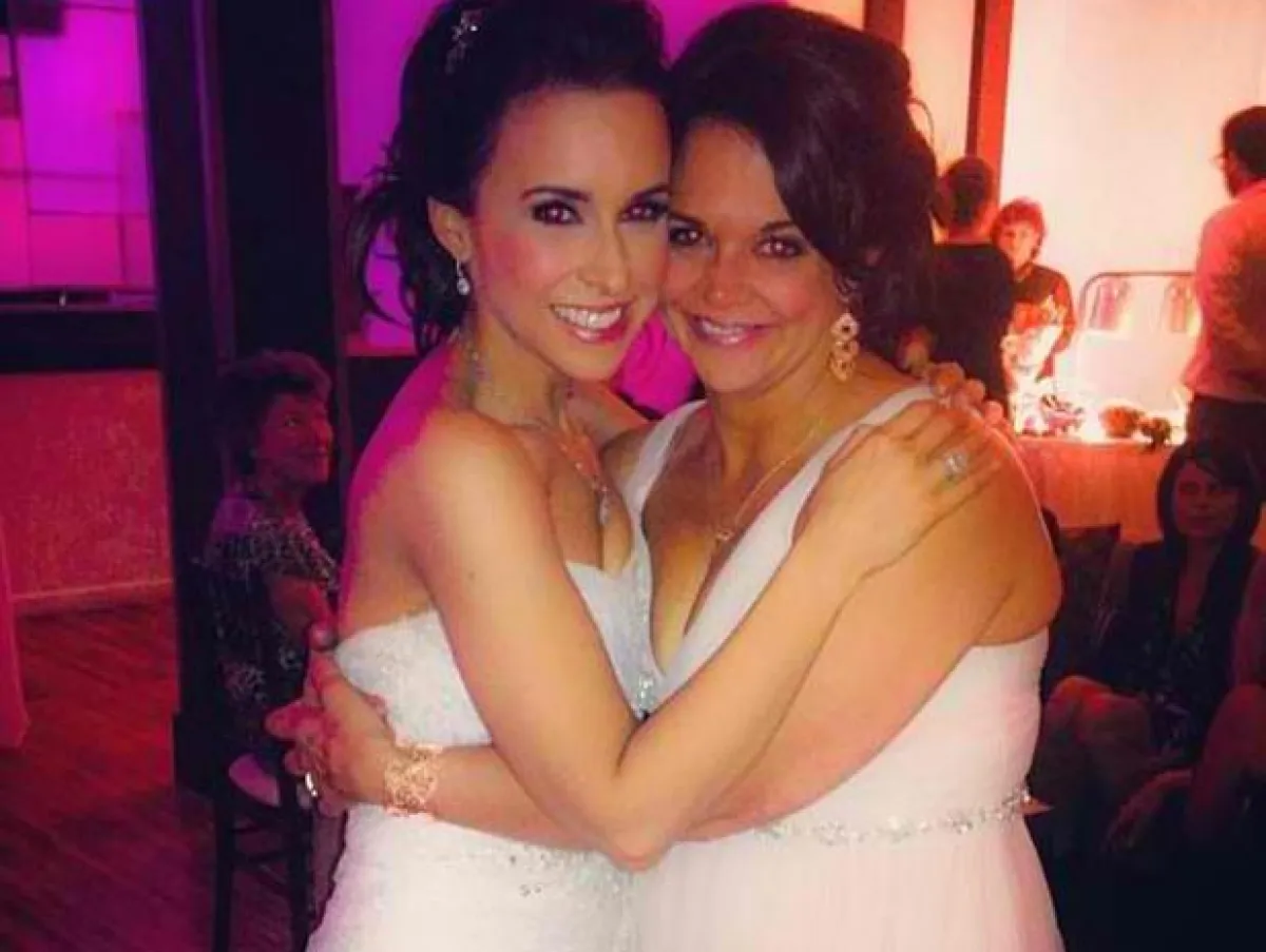 وكل ما نشرته Chabert عن موضوع زفافها، هي صورة لها مع صديقتها تبدو فيها وهي ترتدي فستان زفاف الأبيض المرصع بالكريستالات.