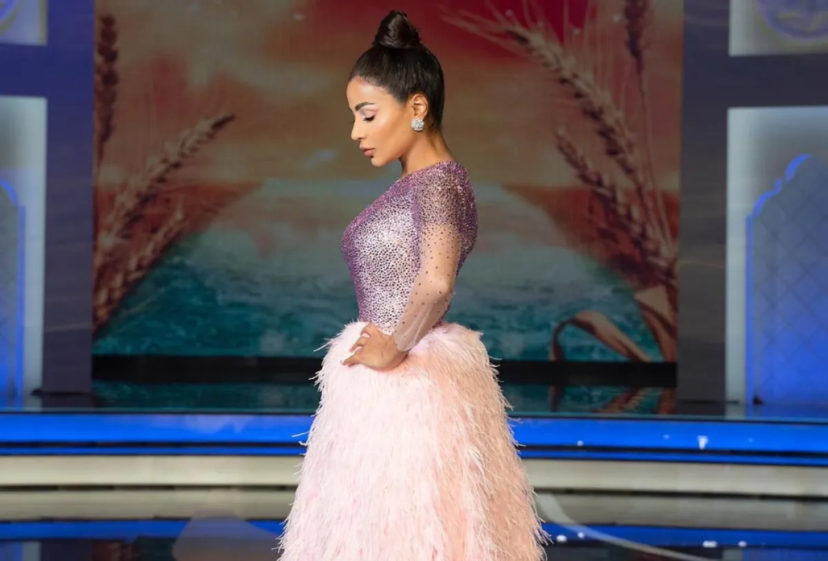 اختارت الإعلامية على شاشة MBC فستاناً رائعاً من أتولييه زهرة مرصع بالكريستال البراق وازدانت تنورته بالتول الزهري والريش ورفعت شعرها كراقصات الباليه.
